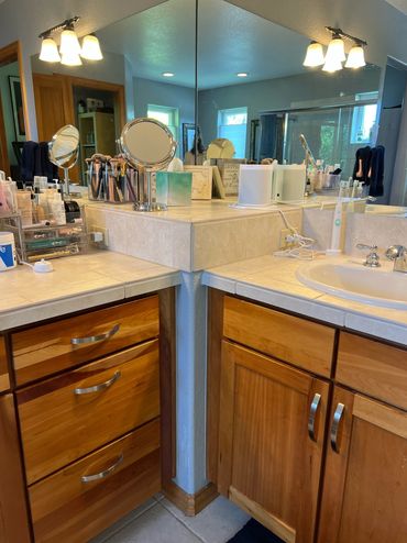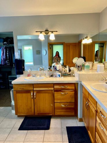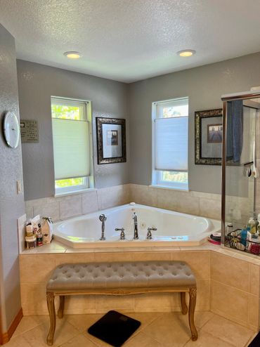 In the primary suite bathroom, storage was a priority. Working within the existing plumbing layout to save time and costs, we reconfigured the space to incorporate additional storage solutions without compromising comfort. The result was a serene and functional retreat that met the client’s needs while maintaining a sense of ease and sophistication.